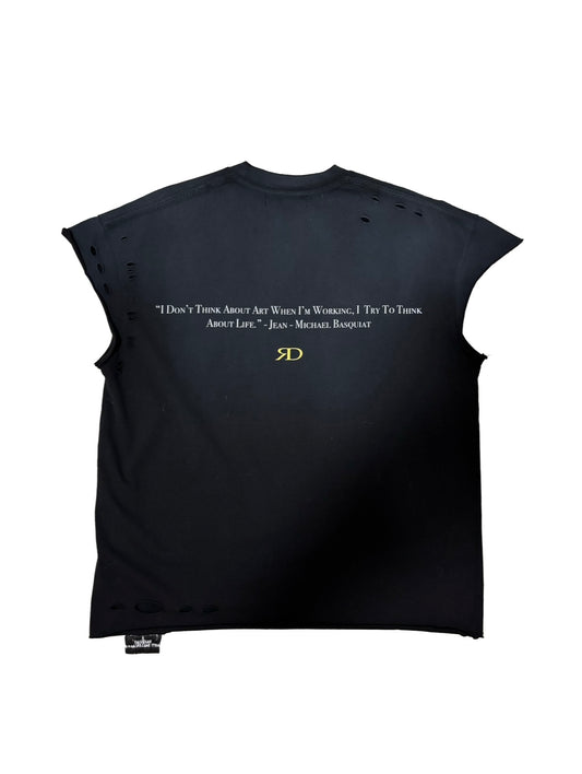 While the MUSE RYAN D’ANGELO x BASQUIAT Cut Off Tee being a homage to the late Artist “Jean - Michael Basquiat” for his inspiration & legacy that has inspired Artist & Creatives for the past decades including Ryan D’Angelo himself.